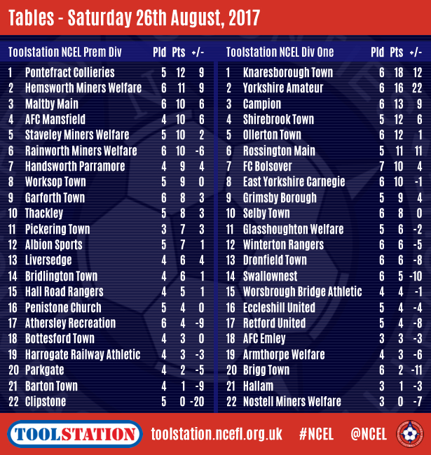 In Division One, Knaresborough Town's faultless start to the season continued as they made it six wins out of six with a 3-0 beating of visitors East Yorkshire Carnegie, courtesy of Blaine Hobson, Tom Hesketh and Greg Kidd.