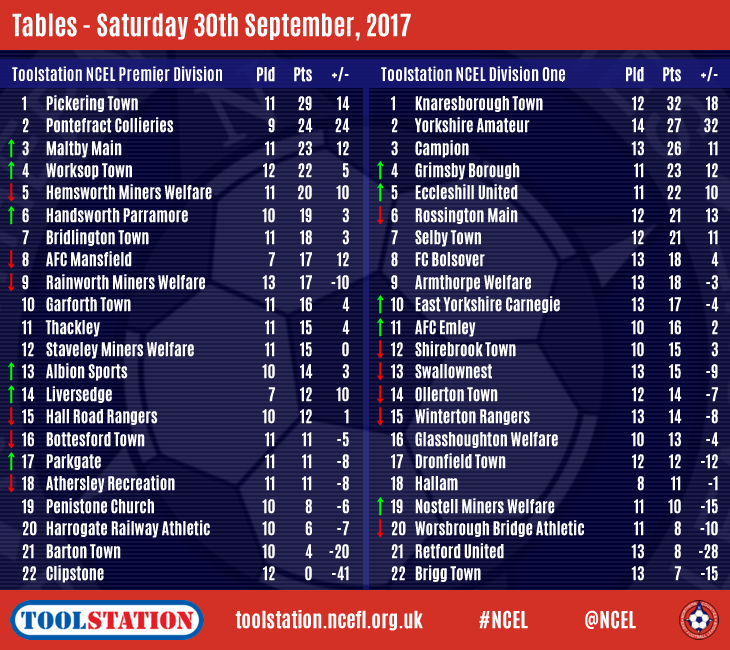 And, the two sides above them also met with Jamie Miller's double helping Nostell Miners Welfare to a 3-1 victory at Worsbrough Bridge Athletic to move their side above their hosts into nineteenth position.