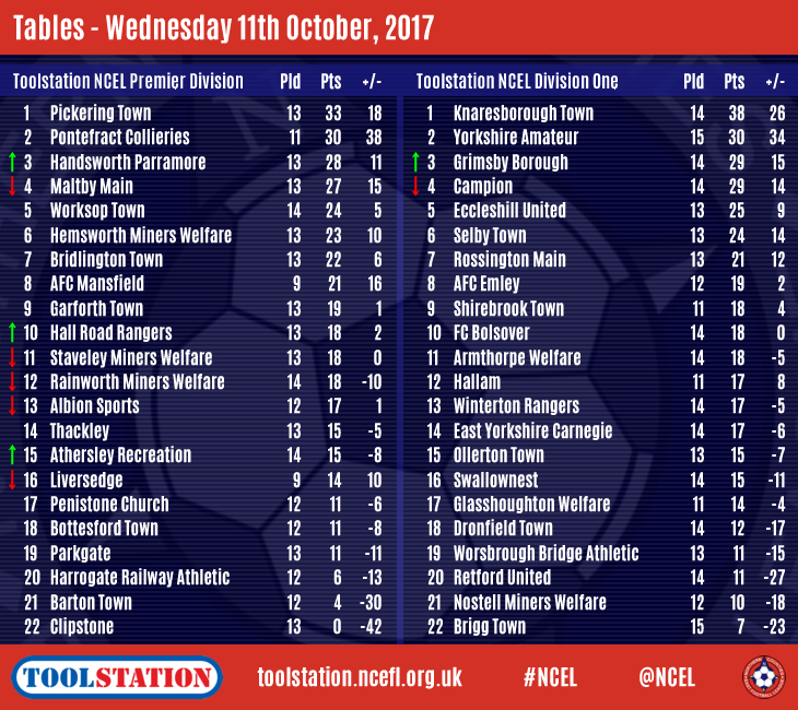 In the Premier Division, Handsworth Parramore are up to third after a 5-2 victory at sixth-placed Hemsworth Miners Welfare, Jason Yates, Jonathan Hill, Jonathan Froggatt and Joseph Thornton putting them four goals up by the 70th minute before a Nash Connolly double sparked a mini-comeback by the home side that was quickly snuffed out by Oliver Yates with the Amber Parras' fifth.