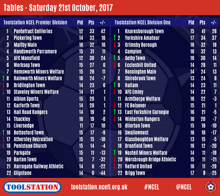 Liversedge and Staveley Miners Welfare, though, could bolster the numbers as their games fell foul to bad weather.