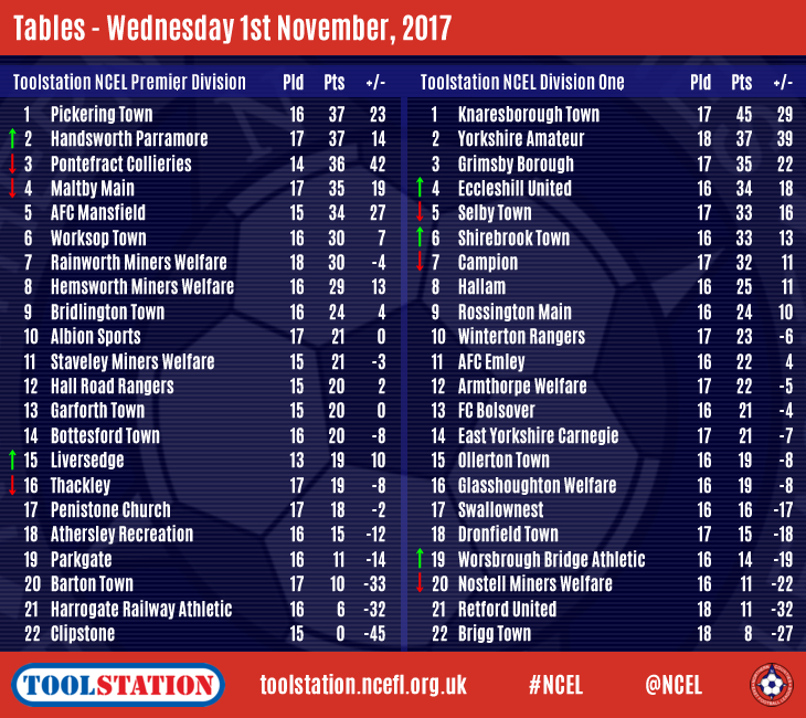 | NCEL Division One | P | Pts | +/- | ||