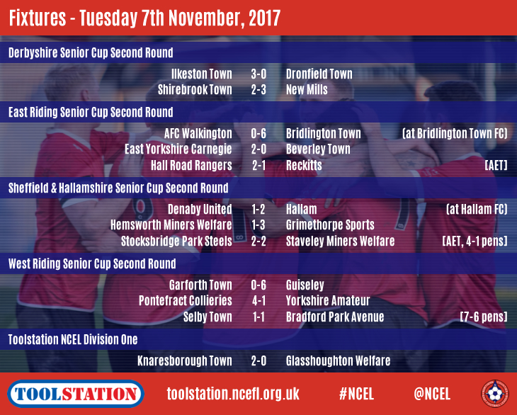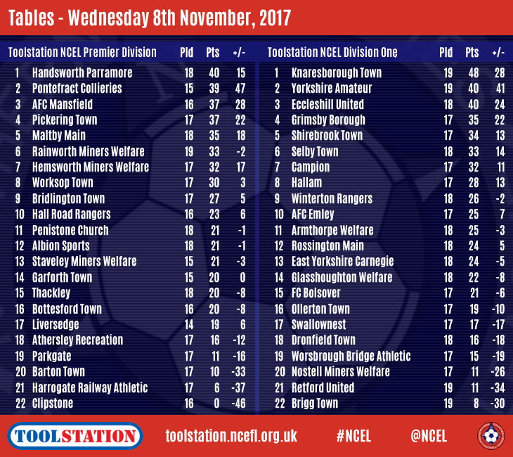 Meanwhile, there were two Division One matches with leaders Knaresborough Town extending their lead at the top to eight points with a 2-0 home defeat of Glasshoughton Welfare, Tom Hesketh and Blaine Hobson with the goals in the final twenty minutes.