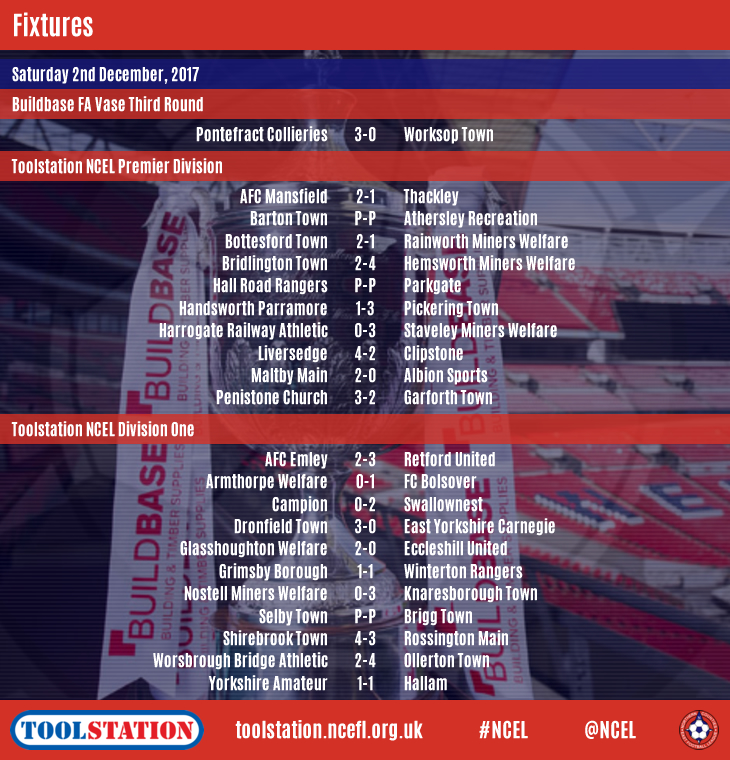 Pontefract Collieries won Saturday's all-Toolstation NCEL Third Round match in the Buildbase FA Vase to be the league's sole representatives in the last 32 of this season's competition.
