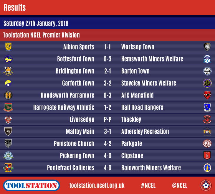 There was one game postponed in the Premier Division due to a waterlogged pitch at Liversedge's home clash with Thackley.
