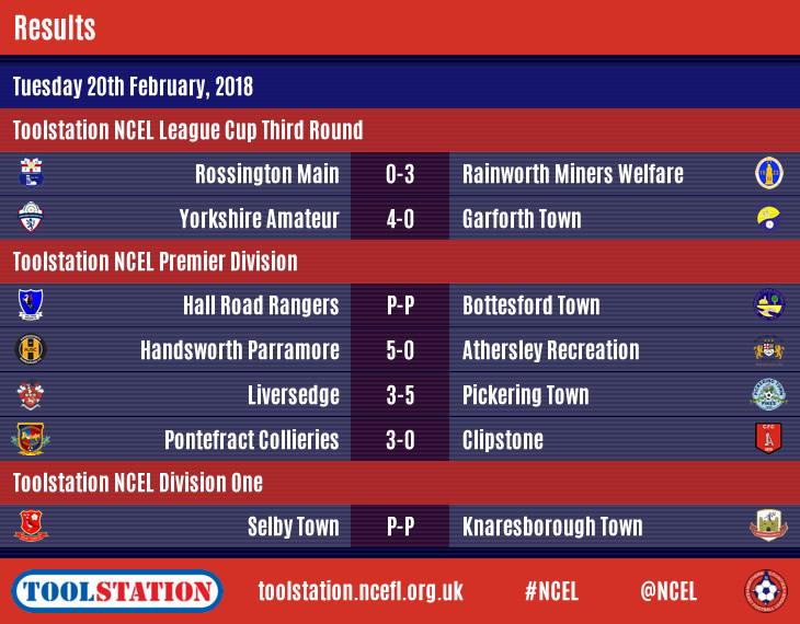 Yorkshire Amateur producing the result of the midweek matches as they won 4-0 at home to Premier Division