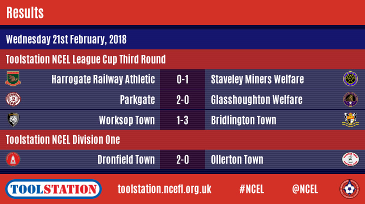 Staveley Miners Welfare are also through to Thursday night's draw as Nathan Modest, Max Pemberton and Charlie Dawes netted in the Wrens' 3-0 victory at
