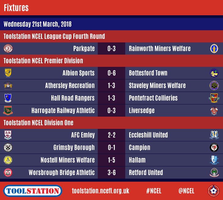 In the Toolstation NCEL League Cup, Hemsworth Miners Welfare and Rainworth Miners Welfare became the latest sides to book their place in the last eight of this year's competition.