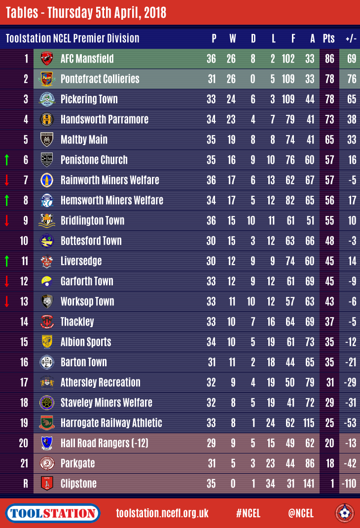 | 17 | Athersley Rec | 42 | 46 | -23 | |