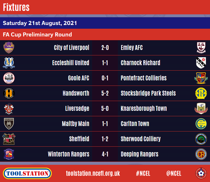Emley AFC are out after a 2-0 loss at City of Liverpool.