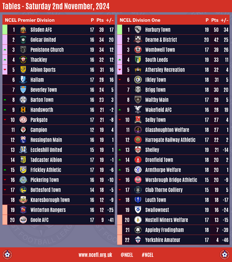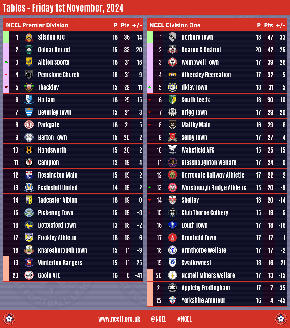 Silsden AFC and Horbury Town both won at the weekend to take advantage of dropped points for their nearest rivals to extend their leads at the top of the NCEL Premier Division and Division One, respectively.Silsden were 4-1 victors at
