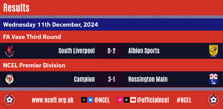 Albion Sports have become the second NCEL side to make it through to the Fourth Round of this season's Isuzu FA Vase.A goal in either half from Nathan Cartman - one in the 37th minute, the other with a quarter-of-an-hour remaining - saw them triumph 2-0 at North West Counties League hosts South Liverpool.