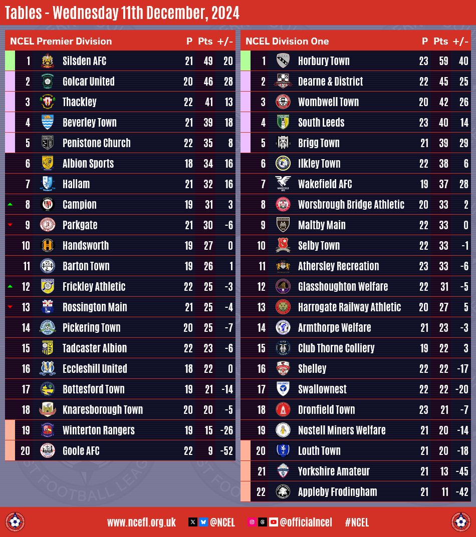 Meanwhile, there were two games in the NCEL Premier Division as table-toppers Silsden were held to a 2-2 draw by visitors