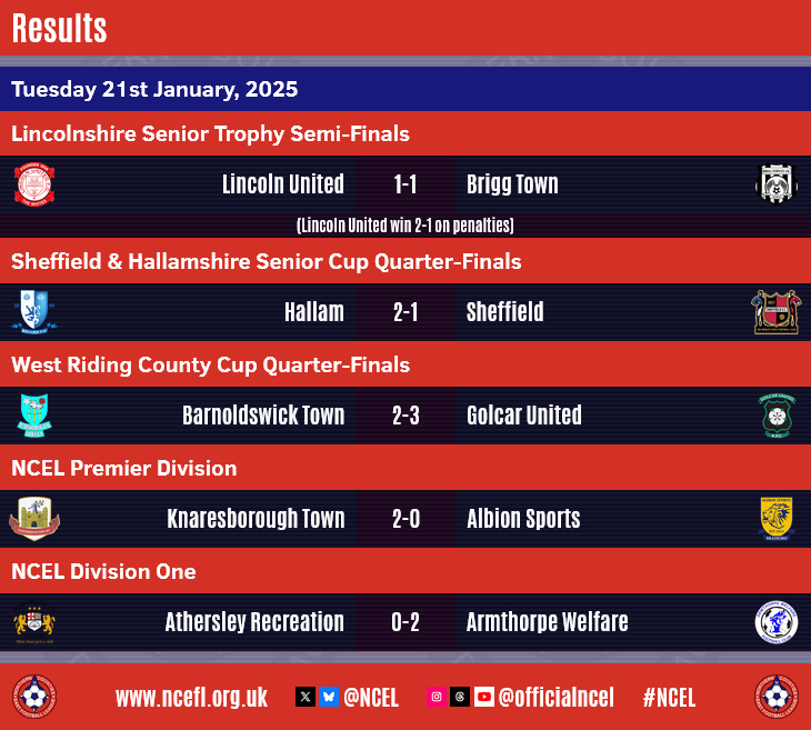 Golcar United also progressed in the West Riding County Cup, Daniel Naidole, Oliver Russon and Alfie Wilkinson netting in the opening period.