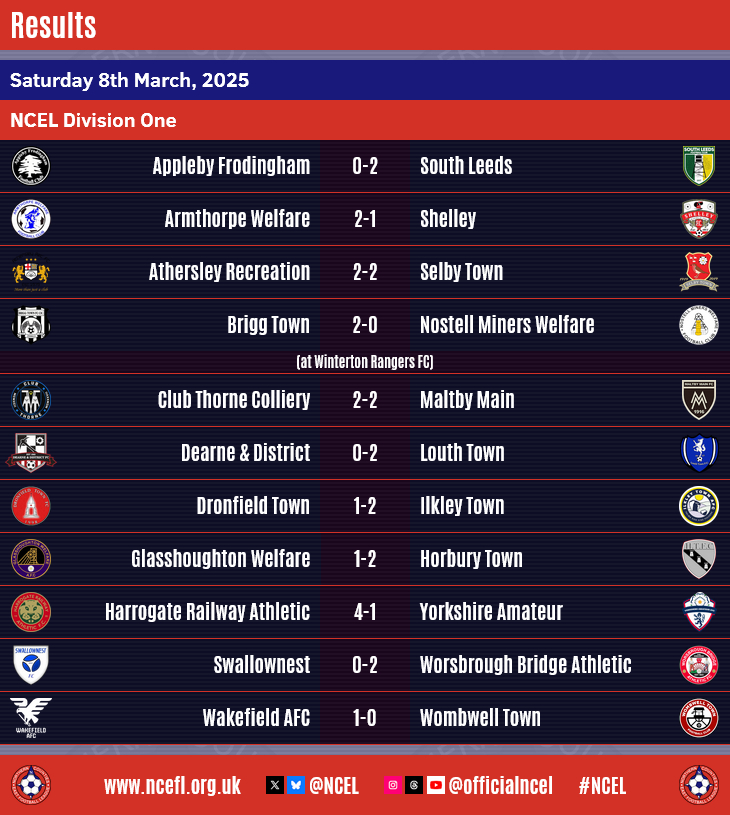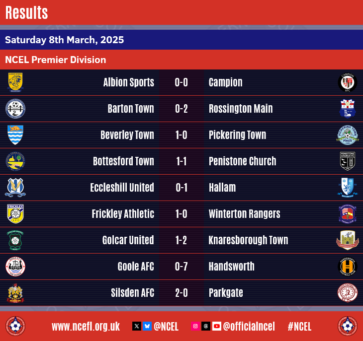 Handsworth, meanwhile, climb up to eighth after their comfortable victory, Alfie Dodsworth and Henry Carne with two each for the Ambers whilst Mitchell Dunne, Scott Ruthven and Harry Jessop also found the net in the day's highest scoring game.