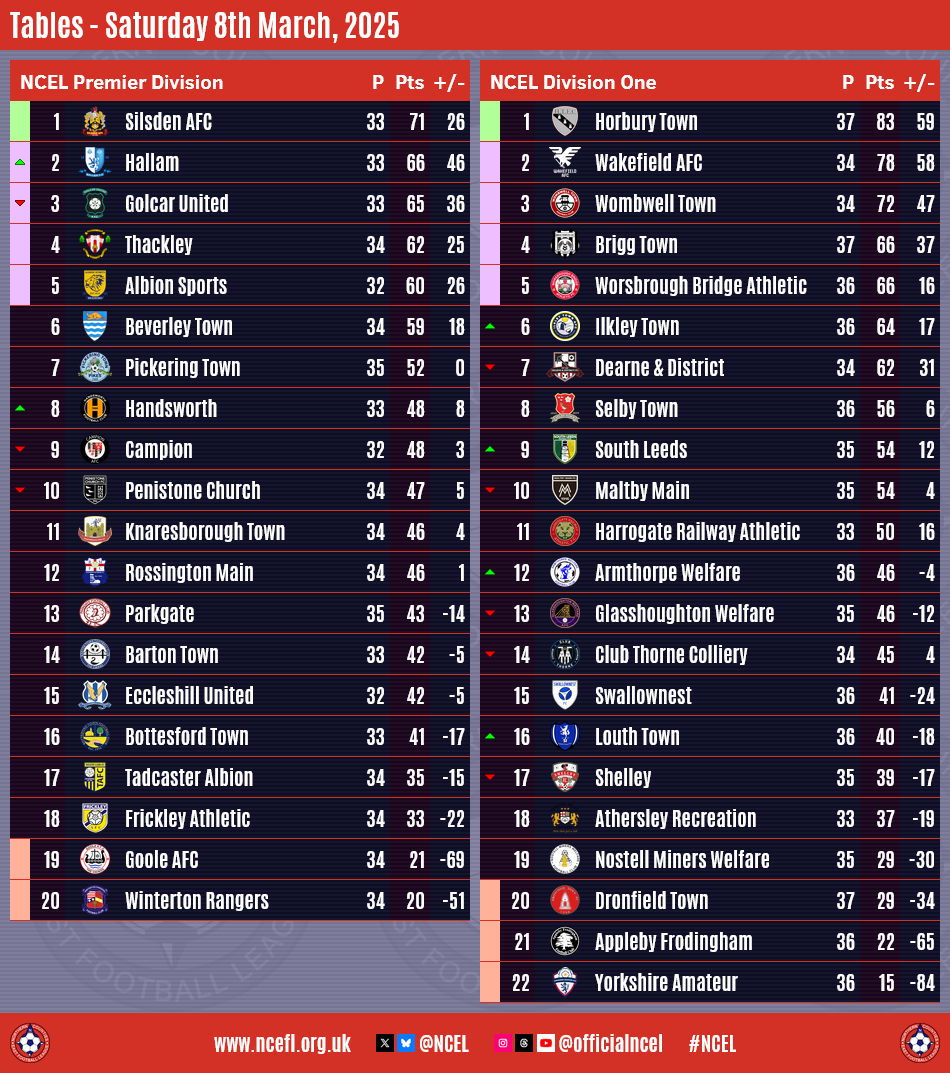It means Wakefield keep in touching distance of Horbury but Wombwell, whose defeat was the first on their travels this season, are now eleven points behind the tabletoppers, both with three games in hand of the leaders.
