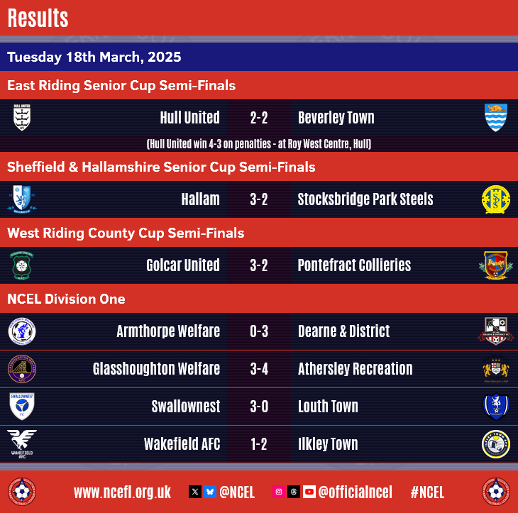 Golcar United who both struck in stoppage time to win 3-2 at home to higher-ranked opposition in the Semi-Finals of their respective County Cups.