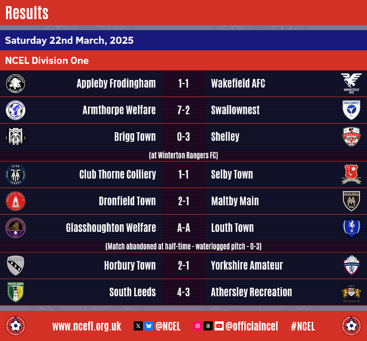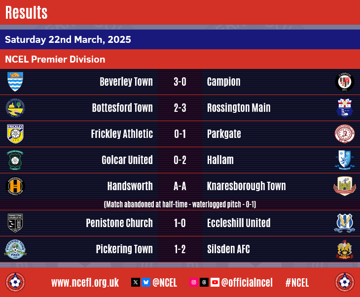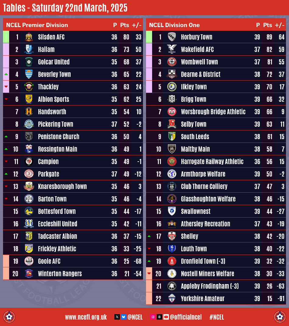 Congratulations to Silsden AFC who were crowned NCEL Premier Division champions on Saturday following their 2-1 victory at Pickering Town.Going into the day's action, the only scenario that would guarantee the Cobbydalers the title this weekend was a win for them and a defeat for