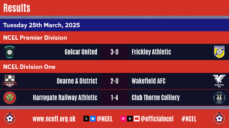 Golcar United confirmed a place in the NCEL Premier Division play-offs with a 3-0 home win over Frickley Athletic in midweek.The Skye Direct Stadium side had seen their title challenge come to an end at the weekend but they ensured another chance for promotion to Step 4 in the National League System as a first half double from George Doyle and a 65th minute strike from Alfie Wilkinson secured them the points they needed.