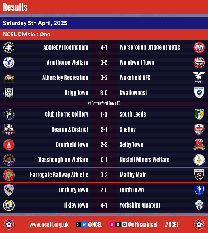 Both Wakefield and Wombwell play their game in hand in midweek, anything but defeats for both sides will mean the title will still be up for grabs going into the final round of matches next weekend.