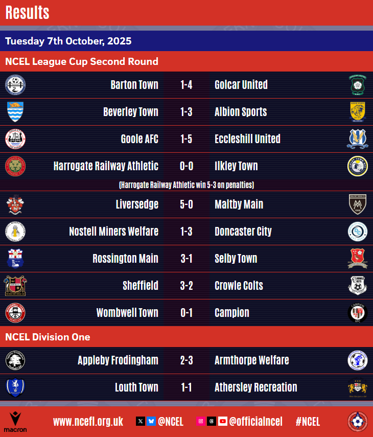 Holders Beverley Town's defence of the JCP Construction NCEL Cup in memory of James Hitchcock has come to an end after a Second Round defeat in midweek.Twelve of the fifteen ties were played with Beverley bowing out after a 3-1 home defeat to Macron NCEL Premier Division rivals