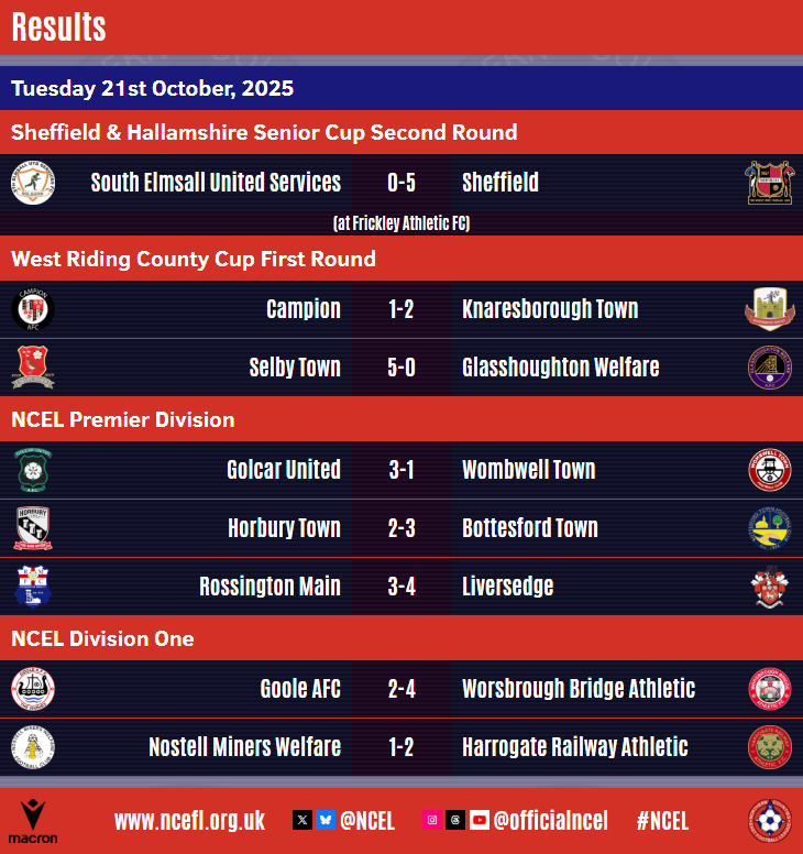 And, there were three all-NCEL ties in the First Round of the West Riding County Cup with