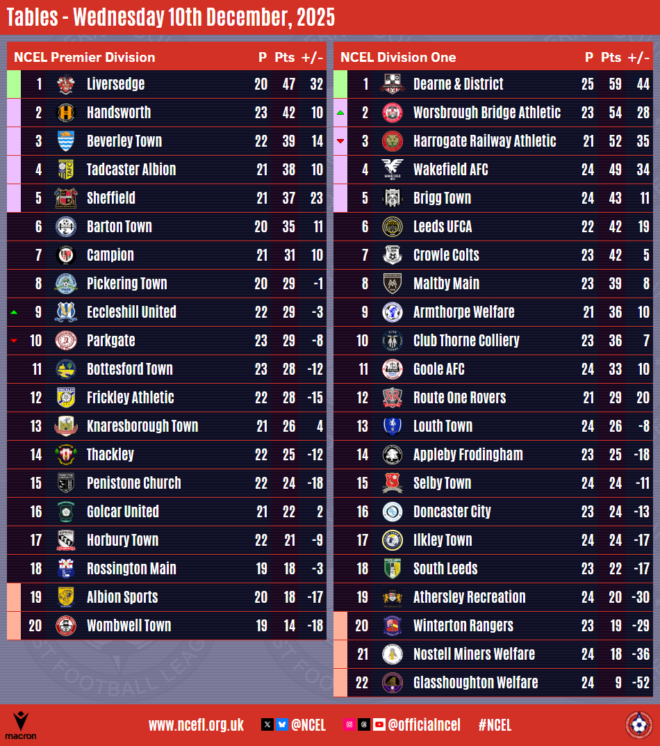 Liversedge's lead at the top of the Macron NCEL Premier Division has grown slightly to five points after their 1-1 draw at Eccleshill United in midweek.In one of only five matches that survived the bad weather, it was the hosts who took the lead in the 78th minute through Lewis Waddington but they saw their advantage quickly cancelled out by Antony Brown.