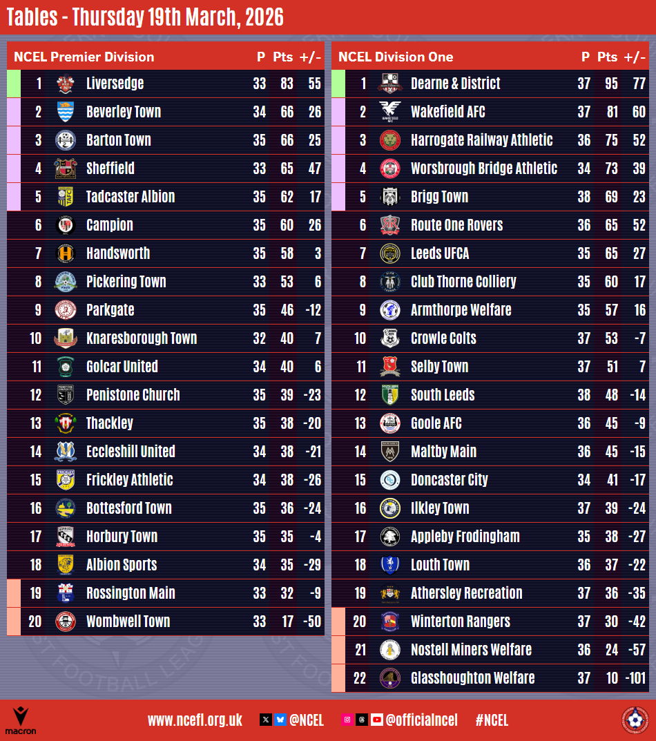 Club Thorne Colliery remain in the hunt too, a 2-1 win at