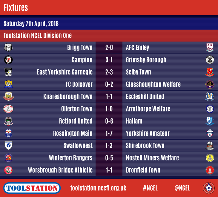Yorkshire Amateur and Shirebrook Town, meanwhile, will be hopeful of a late say in the fight for the top two as away wins moved them to within five and six points of Eccleshill, respectively.