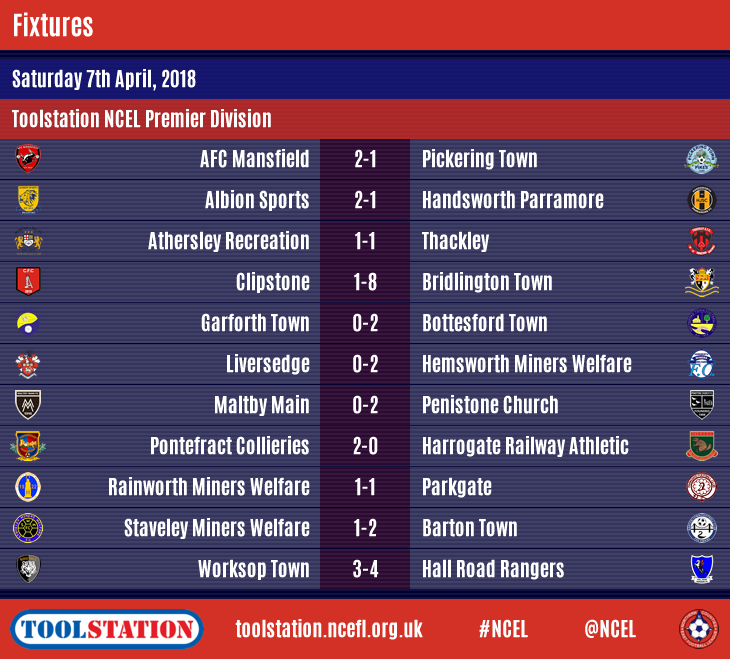 AFC Mansfield won their top-three clash to keep their advantage at the top of the Premier Division at eight points whilst Division One leaders Knaresborough Town secured promotion on a busy Saturday of Toolstation NCEL action.