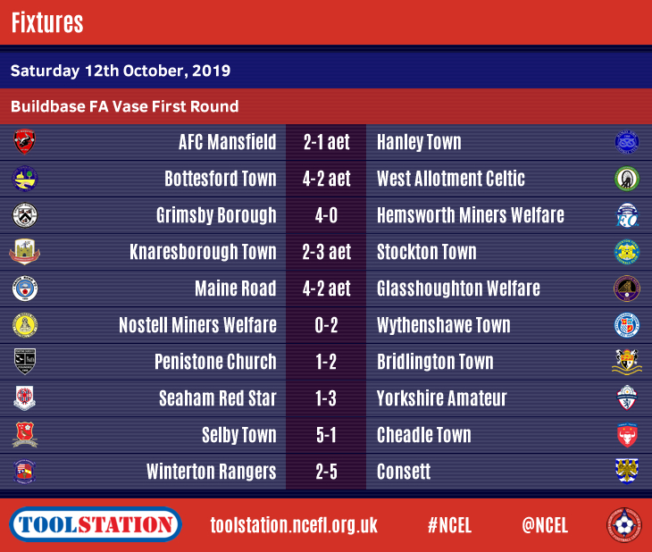 Six Toolstation NCEL sides made it through to Monday's draw for the Second Round of this season's Buildbase FA Vase with victories on Non-League Day.Grimsby Borough and