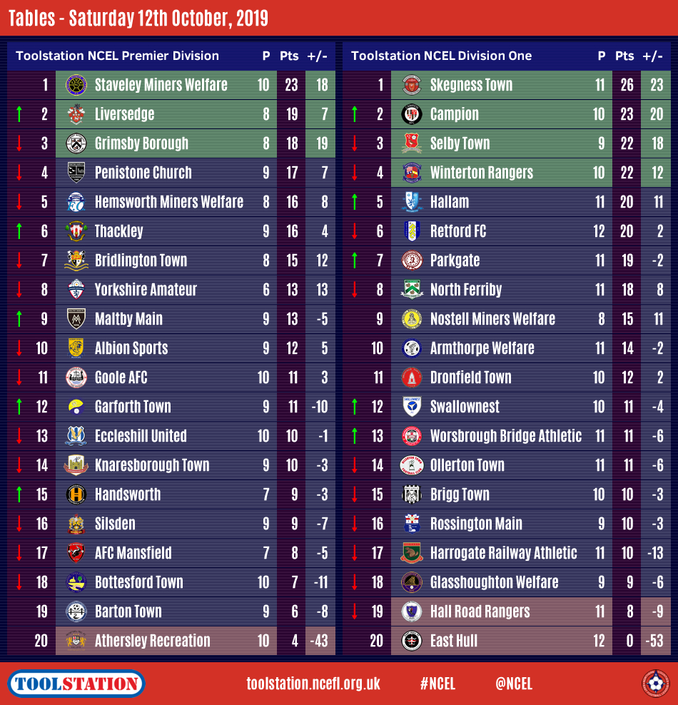 Worsbrough Bridge Athletic were the day's biggest movers, going up six places to thirteenth as they won 3-1 at