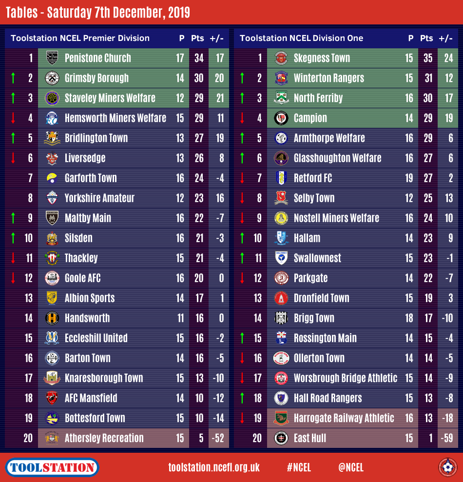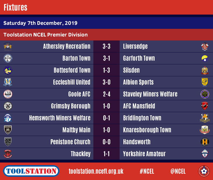 There was a full programme of Premier Division matches for the first time since the beginning of October whilst eight matches went ahead in Division One on a busy Saturday afternoon of Toolstation NCEL football.Leaders