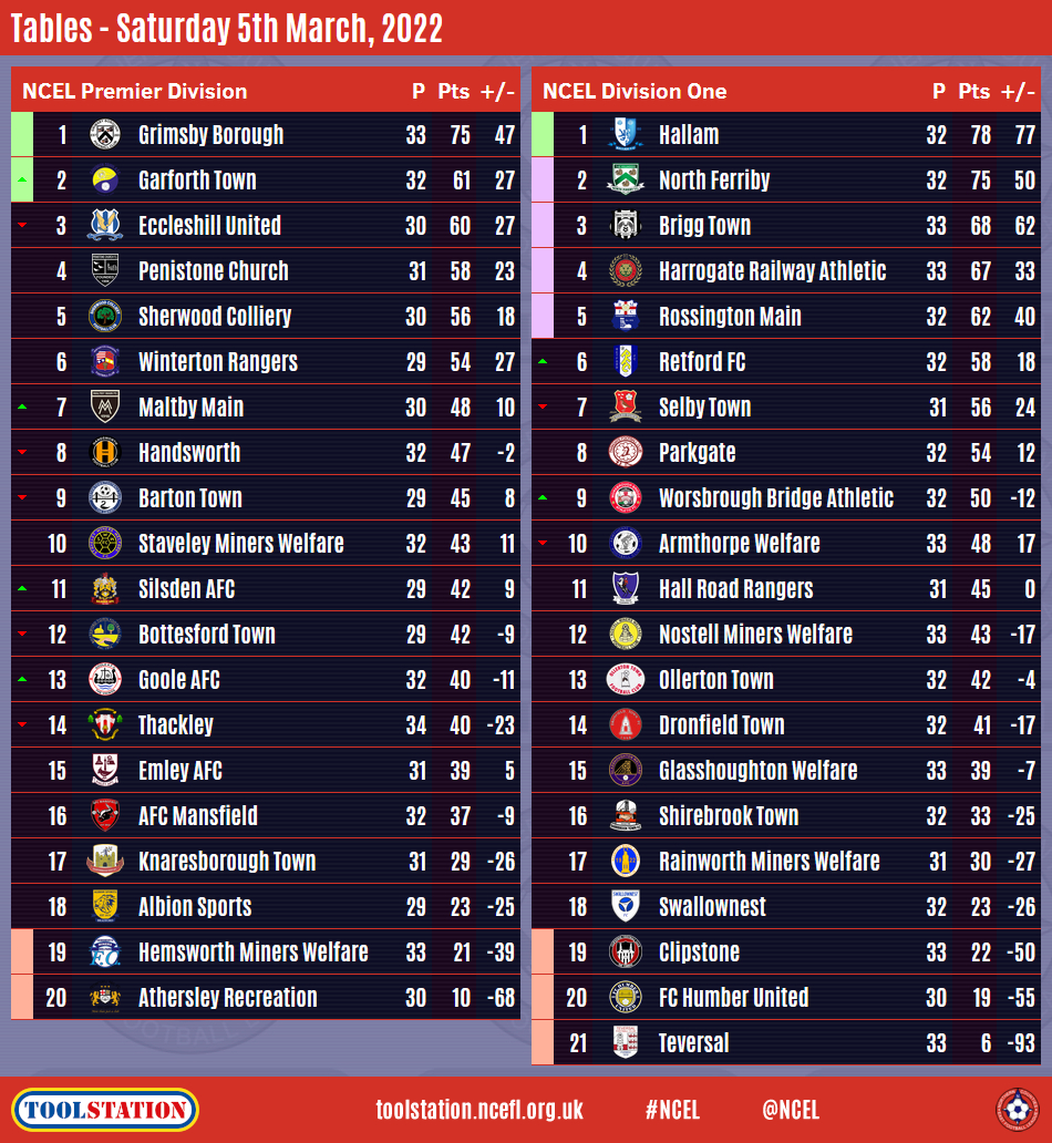 Brigg stay ten points off the top whilst Retford are now four points behind fifth spot after the match between the two sides above them, Harrogate Railway Athletic and Rossington Main, was postponed.