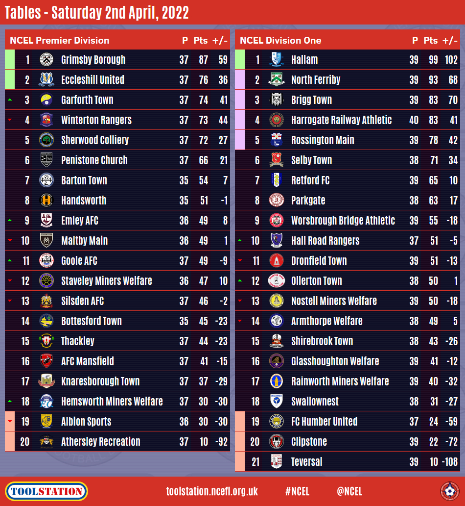 Hallam were crowned Toolstation NCEL Division One champions on the penultimate weekend of the regular season as a 2-1 home win over Clipstone secured them the trophy.It was another thrilling Saturday that means the race for second spot in the Premier Division goes to the wire and we now know who will face each other in the Division One play-offs.