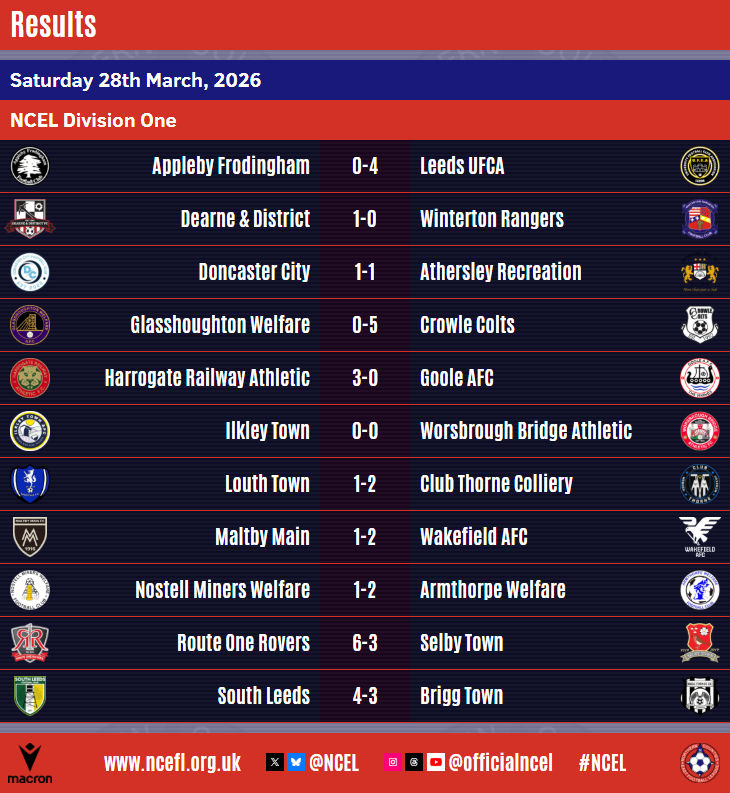 South Leeds that means they are now only one point clear in fifth of the chasing pack, Dayle Hutson, Dylan Corbett and Adam Drury with their goals whilst Harley Blankley, Jamal Stewart, Warren Carr and Kieran Haigh netted for the hosts.