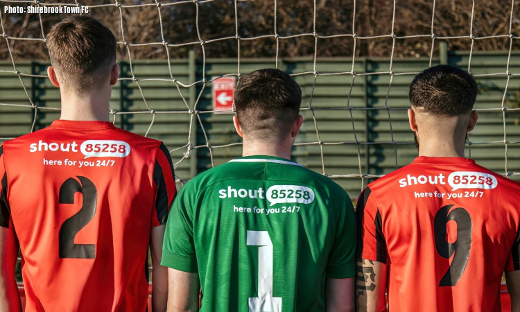 Shirebrook Town have unveiled a new look to the back of their shirts that now features the logo of mental health text support charity Shout.